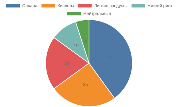 Микроскопическое изображение бактерий в зубном налете, иллюстрирующее кариесогенную биопленку. В заключение этого раздела отметим, что бактериальные факторы взаимодействуют с другими причинами, образуя комплексный процесс. Переход к следующему аспекту позволит глубже понять роль внешних влияний. Роль питания в развитии кариеса Питание напрямую влияет на кислотно-щелочной баланс полости рта и состав зубного налета. Углеводы, особенно простые сахара, служат субстратом для бактерий, ускоряя производство кислот. В российском рационе, где преобладают продукты с высоким содержанием сахара, такие как чай с сахаром, выпечка и сладкие йогурты, этот фактор усиливает риск кариеса. Исследования Федерального центра гигиены и эпидемиологии показывают, что потребление более 50 граммов сахара в день коррелирует с повышенной заболеваемостью на 25–30% среди населения. Механизм действия сахаров включает их расщепление на глюкозу и фруктозу, которые бактерии быстро ферментируют. Частота приема пищи играет ключевую роль: перекусы между основными приемами пищи продлевают время кислотного воздействия, не давая слюне восстановить p H. Например, употребление конфет или сухофруктов без последующего ополаскивания рта приводит к локальным зонам деминерализации на контактных поверхностях зубов. Кроме сахаров, кислые продукты, такие как цитрусовые или газированные напитки, напрямую эродируют эмаль, усиливая кариесогенный эффект. Питание определяет не только количество, но и качество микробной активности в полости рта. Дефицит определенных нутриентов усугубляет ситуацию. Недостаток кальция и фосфора в рационе снижает способность эмали к реминерализации, а отсутствие витамина D, распространенное в северных регионах России, ухудшает абсорбцию этих минералов. Рекомендации Российского общества стоматологов включают включение в меню молочных продуктов, зелени и рыбы для баланса. В то же время, чрезмерное потребление фосфатов из колы или обработанных мясных продуктов может нарушить минеральный обмен, способствуя накоплению налета. Для наглядности рассмотрим категории продуктов по их влиянию на кариес: