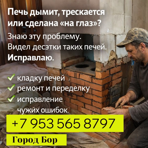 Ремонт старых печей Ремонт печей в бане Переборка банных печей Чистка дымоходов и ремонт борова Слом старых печей Бюджетная печка из б/ У кирпича Похожие объявления договорная