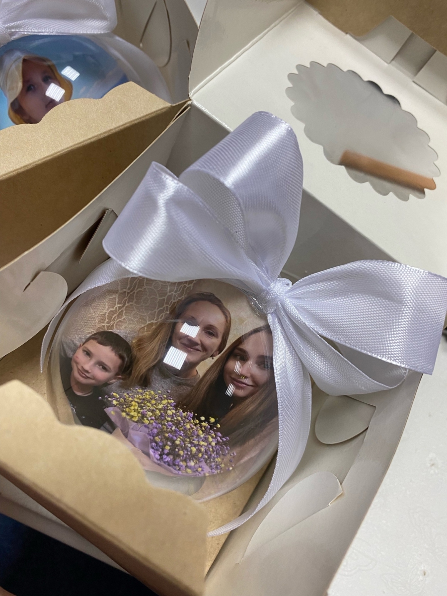 Александра Предлагаю к заказу ёлочные новогодние шары с Вашими фотографиями. 8 см -350₽ 10см - 400₽ Шарики в индивидуальной упаковке с красивым бантиком и Вашей любимой фотографией . Подарок о котором будут вспоминать каждый год наряжая ёлочку ???? Похожие объявления договорная