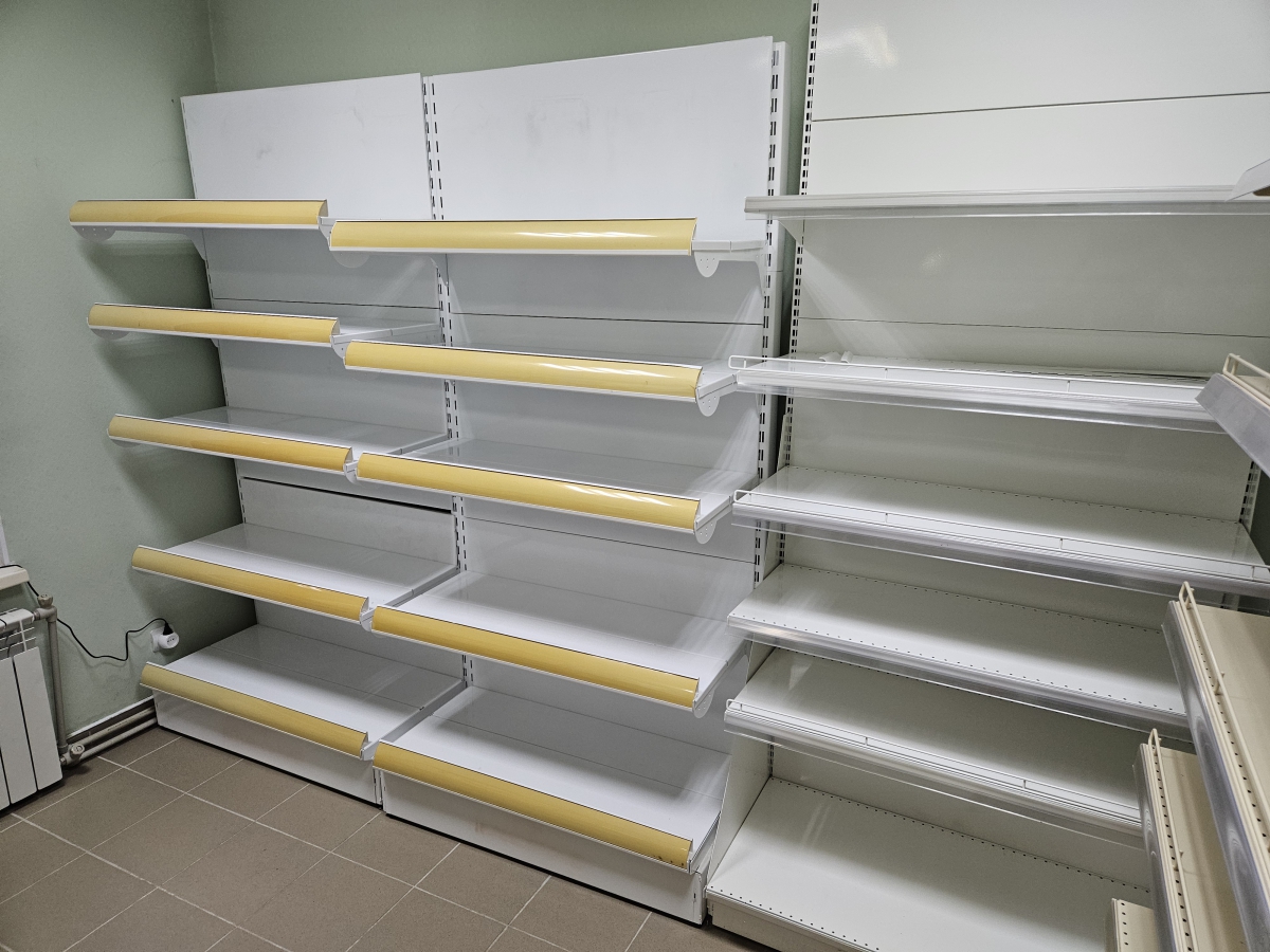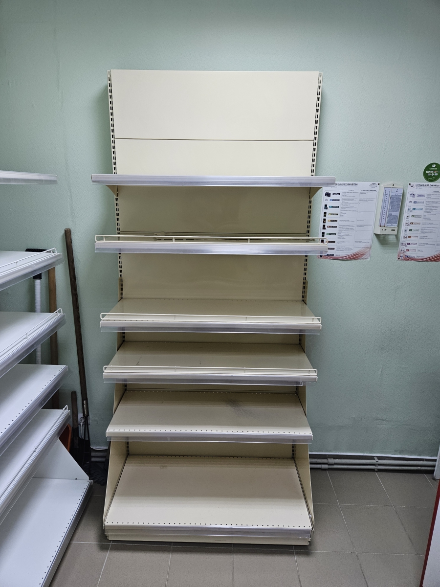 Стеллажи торговые металличкские разборные, пристеночные, б/у. 2 стиллажа по 5 полок: высота 215 см; ширина 100 см; глубина 60 см. 2 стиллажа по 6 полок: высота 225 см; ширина 100 см; глубина 60 см. Есть световые короба над стеллажами. Похожие объявления договорная