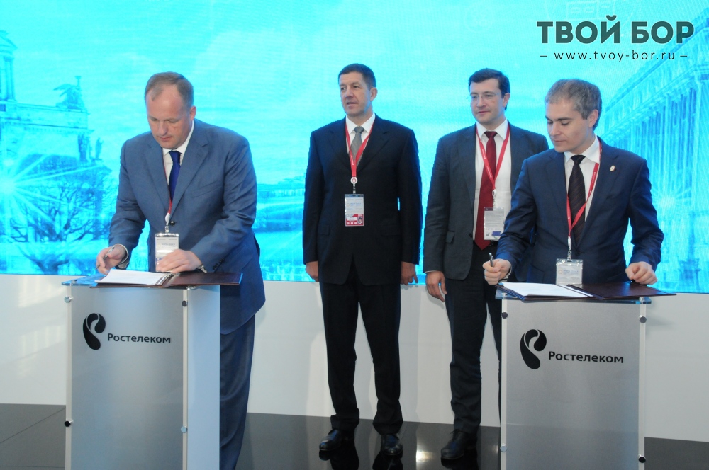 24 мая глава Нижегородской области подписал соглашения с рядом компаний. В частности, подписаны соглашения о сотрудничестве с Росстандартом, Российским экспортным центром, ООО «Производственная компания «ВИС», ПАО «Почта банк», издательством «Просвещение». Благодаря этому Нижегородская область сможет реализовать новые инфраструктурные и инвестиционные проекты, создать новые рабочие места, повысить доходы жителей региона. Глава региона особо отметил, что благодаря налоговым поступлениям можно решить ряд социальных вопросов. Также в этот день Глеб Никитин заключил ряд соглашений с Московской, Калужской, Рязанской, Костромской и Челябинской областями. 25 мая был подписан документ об условиях концессионного соглашения о создании информационно-диспетчерского центра, а также остановочных павильонов с мультимедийными табло вывода информации между ПАО «Ростелеком» и администрацией Нижнего Новгорода. Договор предусматривает оснащение областного центра «умными остановками». До конца 2018 года будет установлено 334 остановки. Также в этот день состоялась презентация судна на подводных крыльях «Валдай-45Р», которое было «Центральным конструкторским бюро по судам на подводных крыльях им. Р. Е. Алексеева» По словам Глеба Никитина судно, не имеющее аналогов в мире, имеет огромный экспортный потенциал. Всего в рамках ПМЭФ – 2018 Глеб Никитин провел более 50 переговоров и подписал более 10 соглашений. Источник: Твой Бор