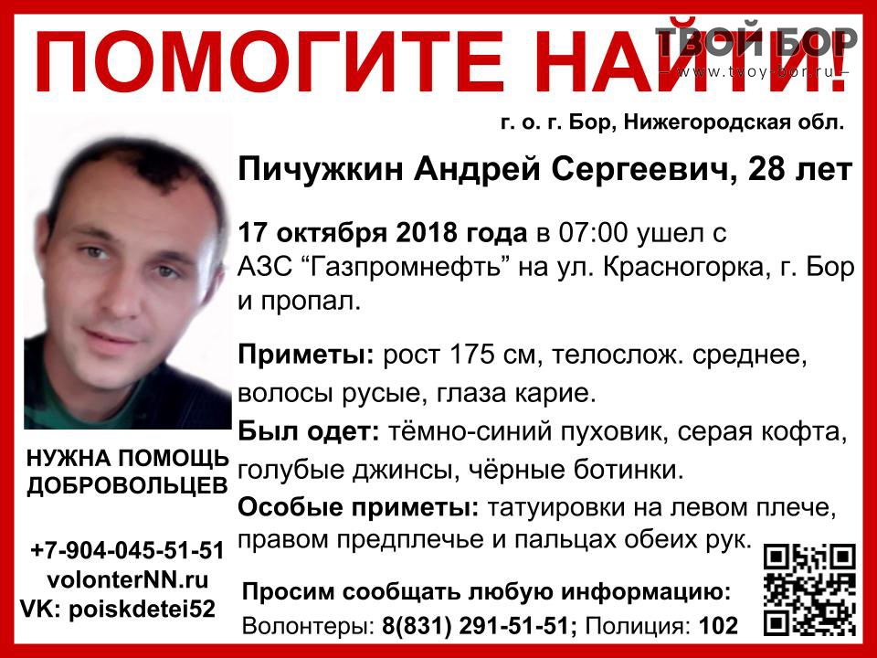 28-летний Андрей Пичужкин ушел с автозаправки на Бору и пропал![]() Его ищут уже неделю