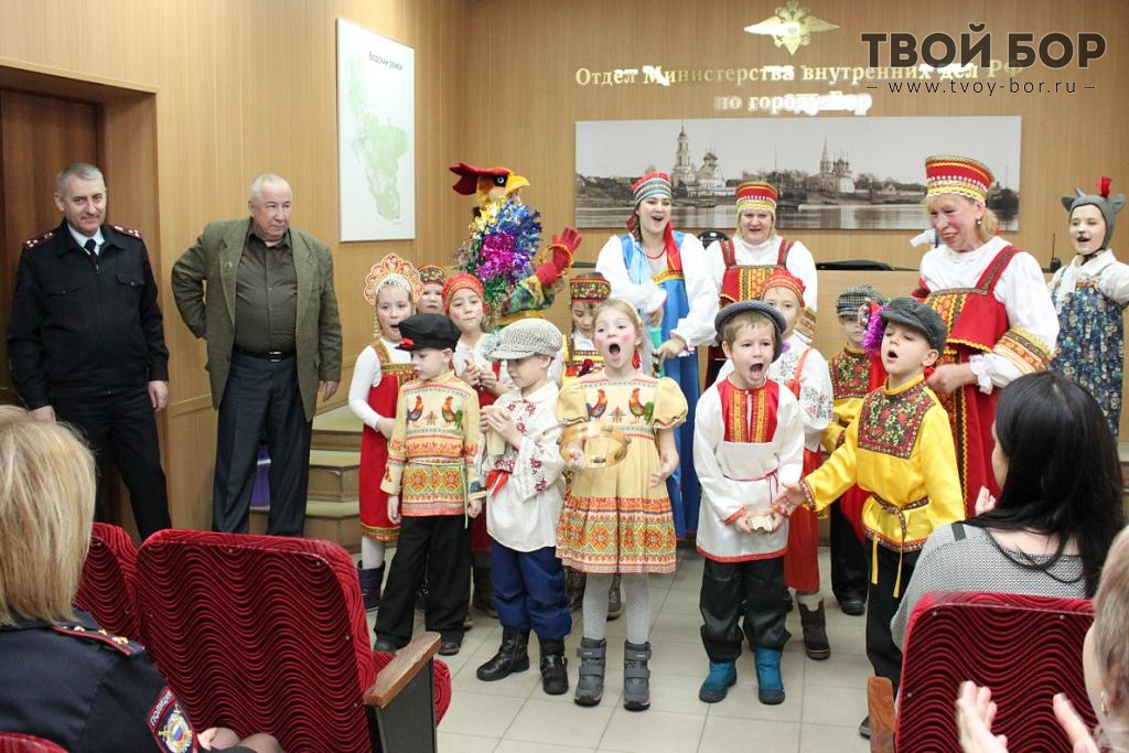 Ответным подарком для стражей порядка стали колядки в исполнении коллектива из педагогов и воспитанников дошкольного образовательного учреждения. «Колядовщики» исполнили обрядовые песни, в которых пожелали полицейским добра, благополучия и успеха в служебной деятельности. В свою очередь, последовав традиции, сотрудники ОВД отблагодарили артистов сладостями, а председатель Общественного совета – материальным подарком. Благодарность сотрудникам и воспитанникам дошкольного образовательного учреждения за организованный праздник выразил начальник Отдела МВД России по г. Бор полковник полиции Николай Черновский: «Настроение личному составу подняли на всю рабочую неделю. Думаю, что это положительно повлияет на результаты оперативно-служебной деятельности». Мероприятие прошло в рамках всероссийской акции «Студенческий десант». Отдел МВД России по г.Бор Источник: Твой Бор