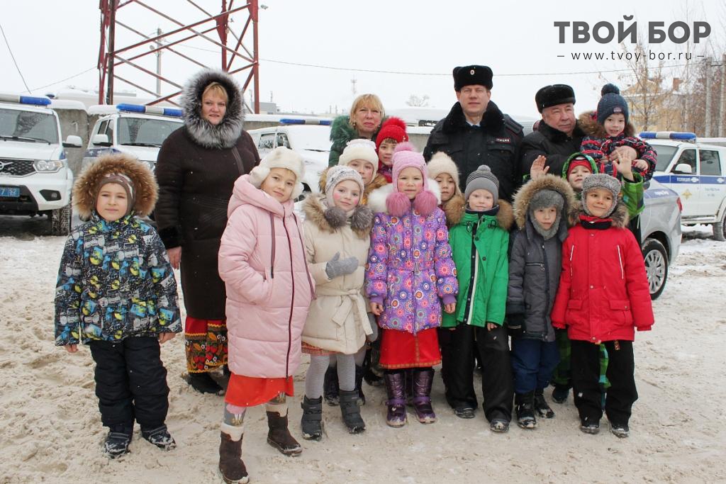 Воспитанники детского сада дружат с борской полицией уже давно. К профессиональному празднику дети готовили творческое видеопоздравление для полицейских Нижегородской области. Тогда, в видеоролике, подготовленном совместно с пресс-службой ГУ МВД России по Нижегородской области, пятилетние ребята рассказывали о том, что это за профессия, в чем заключается работа сотрудников ОВД, делились своими представлениями о службе в полиции и роли полицейских в жизни общества. Не смотря на то, что взгляды и впечатления малышей в чем-то различны, юные борчане сошлись в едином мнении, что служба стражей порядка хоть и нелегка, но однозначно полезна и необходима для спокойствия и безопасности граждан. Убедиться в этом ребятам помогла экскурсия в Отдел МВД России по г. Бор, в ходе которой они смогли побывать в служебных помещениях борской полиции, понаблюдать за работой стражей порядка и даже потрогать и примерить спецсредства, стоящие на вооружении сотрудников ОВД. Особый восторг малышей вызвало знакомство с кинологом и служебной собакой Чариной, специализирующейся на поиске взрывчатых веществ. Ребята давали команды четвероногому полицейскому и за их выполнение самостоятельно вручали ей лакомство. С интересом малыши наблюдали и за обстановкой на улицах родного города через мониторы системы «Безопасный город». После чего сделали вывод, что теперь будут особенно внимательны и послушны на дорогах, ведь стражи порядка все видят. Главным сюрпризом для мальчиков стала возможность почувствовать себя в роли полицейских дорожно-патрульной службы. Ребята сидели за рулем служебного автомобиля, включали спецсигнал и по громкоговорителю предупреждали воображаемых участников дорожного движения о неукоснительном соблюдении ПДД.
