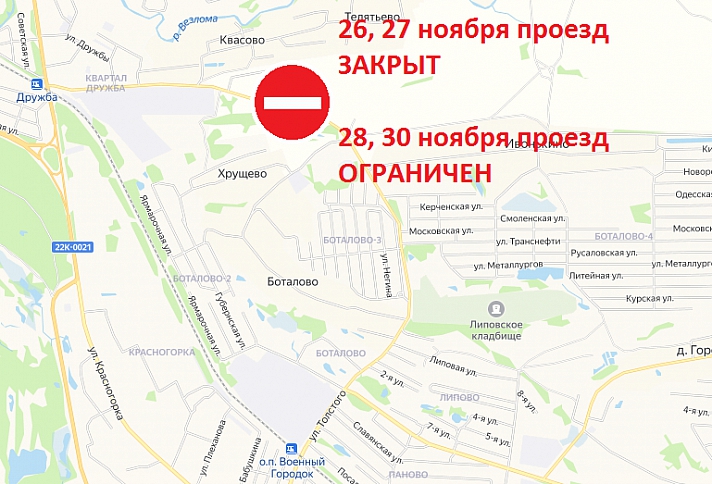 Временное ограничение движения автотранспортных средств на участке автодороги Неклюдово-Ивонькино-БоталовоВ связи с проведением работ по строительству подъездной автодороги к тепличному комплексу, временно будет ограничено движение транспорта на участке автодороги Неклюдово-Ивонькино-Боталово.