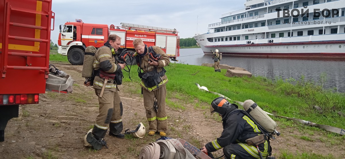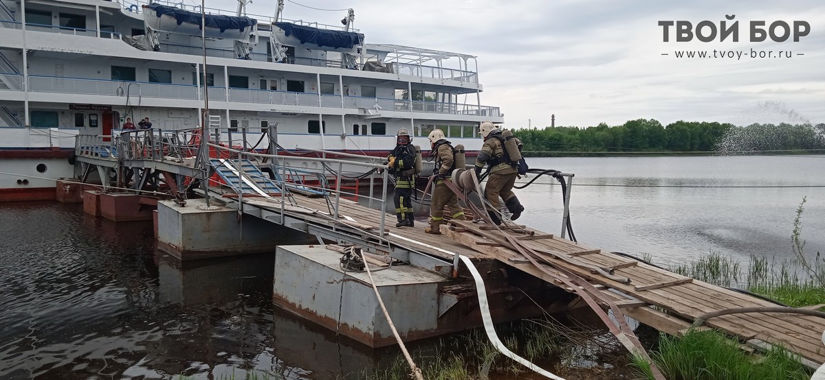 Спасатели тушили теплоход в п. ОктябрьскийВ п. Октябрьский прошли учения спасателей.