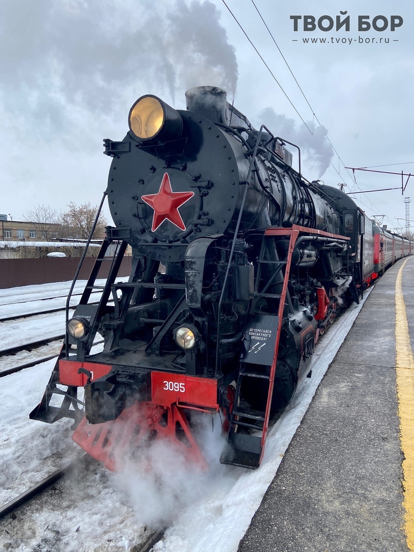 Однако не все прошло гладко: в заданное время приехала лишь электричка с туристами, а сам ретро-локомотив был доставлен отдельно чуть позже. Зато уезжал с Бора он феерично, оглашая свистом весь Бор. В следующий раз поезд должен приехать на Бор в мае после ремонта. Источник: Твой Бор