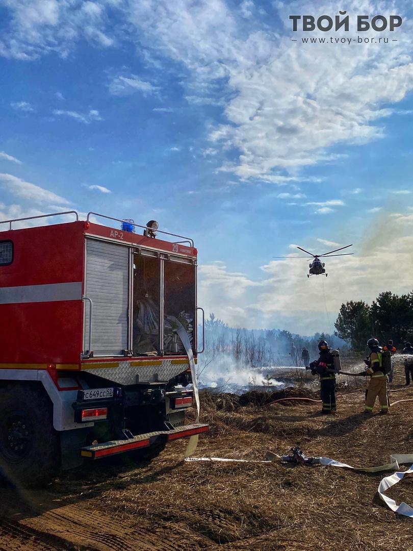 В кратчайшие сроки ликвидировать пожар не удалось. Через 3 дня в связи с ухудшением погодных условий произошло увеличение площади лесного пожара до 30 Га. Расстояние до ближайшей деревни Коринка - 2 км. В зоне риска и заповедник "Керженский". На территории округов г. Бор и Семеновский введен режим "Чрезвычайная ситуация в лесах". К месту вымышленного пожара прибыли силы и средства лесопожарной станции, Борского пожарно-спасательного гарнизона. Руководство МЧС принимает решение о направлении оперативных групп ГУ МЧС России. Огонь уже распространился на труднодоступную местность. Оперативный подход имеющихся сил невозможен из-за рельефа местности. К месту ЧС прибыл вертолет МИ-8 Жуковского авиационного центра с десантной группой Авиалесохраны республики Марий Эл и Приволжского регионального поисково-спасательного отряда. Его задача - сбросить воду по заданным координатам. Вертолетом медицины катастроф 'Робинзон" была отработана задача по спасению человека в тяжёлом состоянии, находящемся в горящем лесном массиве. В результате всех оперативных мер условный пожар был локализован. Источник: Твой Бор