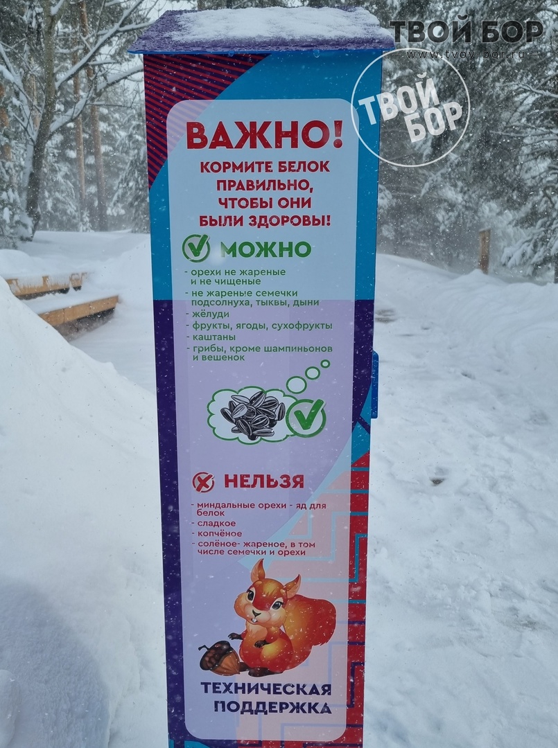 Установлен он около традиционного места обитания белок (маленький мост). Да здравствуют откормленные белки! Источник: Твой Бор