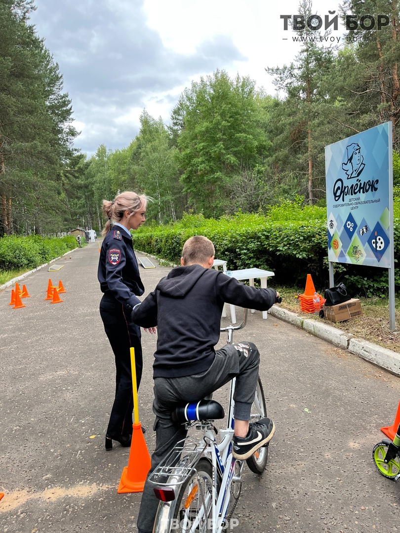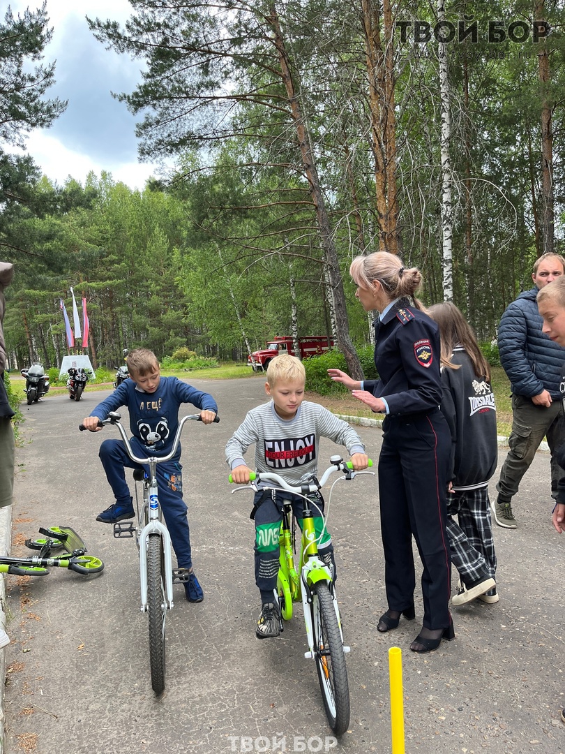 На территории лагеря были организовано несколько тематических площадок. На первой прошло профилактическое мероприятие «Безопасное колесо». Ребятам предстояло преодолеть 6 испытаний, чтобы получить звание лучших знатоков Правил дорожного движения. На следующей площадке отдыхающие познакомились с техникой борского мотоклуба. Профессиональные мотоциклисты познакомили ребят с техническими характеристиками своих железных коней, рассказали о правилах безопасного передвижения на двухколесной технике и поделились своими личными историями, когда несоблюдение ПДД привело к трагедии и травмированию. Источник: Твой Бор