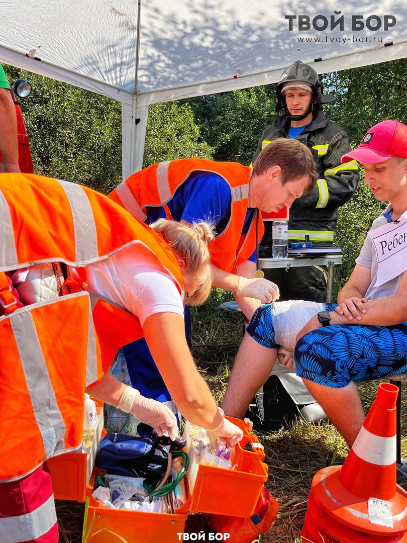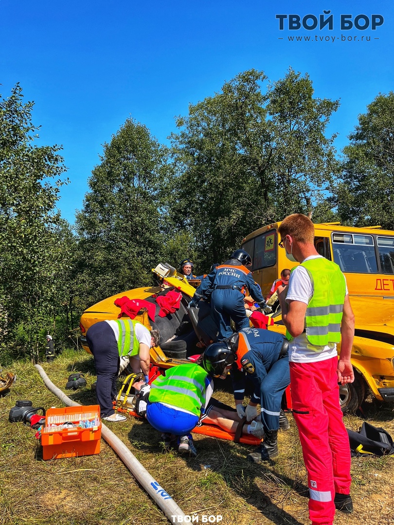 Сигнал поступил в 11:02 17 августа на английском языке, так как по задумке один из пострадавших иностранный гражданин. При помощи онлайн переводчика служба ЕДДС перевела сигнал и доложила главе МСУ. Первые службы прибыли в течение 15 минут, из расположенного рядом с местом происшествия с. Линда. В администрации округа было проведено внеочередное заседание КЧС, развернут оперативный штаб и объявлен режим ЧС. Передвижной пункт был развернут и на месте условного места ЧС. Были отработаны вопросы организации совместных действий экстренных служб при ликвидации последствий ЧС техногенного характера. Также, отработана санитарно-авиационная эвакуация условно пострадавших из района ЧС. В случае крупного ДТП медики сначала осматривают пострадавших. Если они не в тяжелом состоянии, то направляют их в сортировочный пункт. Тяжелые пострадавшие силами волонтеров и МЧС доставляются на скорой помощи в ЦРБ. Что и было выполнено в ходе учений. Всего в тренировке были задействованы 15 единицы техники и более сотни человек. Текст: Администрация городского округа город Бор Источник: Твой Бор