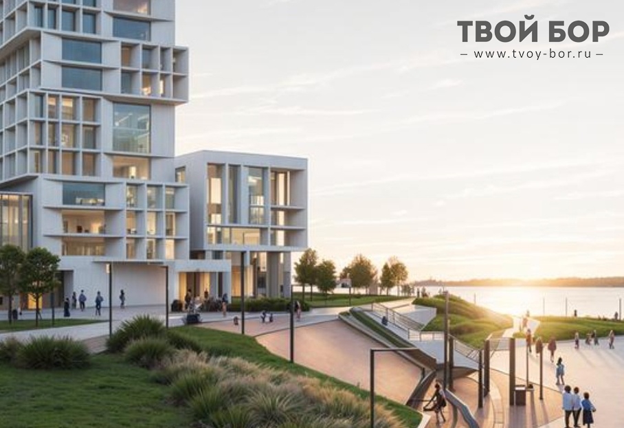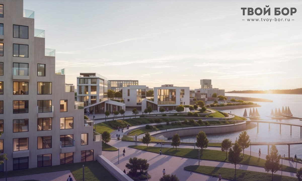 На сайте застройщика есть краткое описание проекта: «новый масштабный проект премиум-класса, который будет располагаться в живописной локации на набережной Гребного канала в Нижнем Новгороде. Проект представляет собой 5-этажные дома на первой береговой линии, выходящие на променадную набережную. В левой части проекта расположены дома с террасами и балконами высотой до 13 этажей, силуэты которых напоминают паруса, а в правой части — дома чуть ниже, переменной этажности, до 11 этажей». Там же обещают построить всю необходимую социальную инфраструктуру: три детских сада, современная общеобразовательная школа, многофункциональный спортивный центр с бассейном, игровыми залами и теннисным кортом, несколько причалов и яхт-клуб. Источник: Твой Бор
