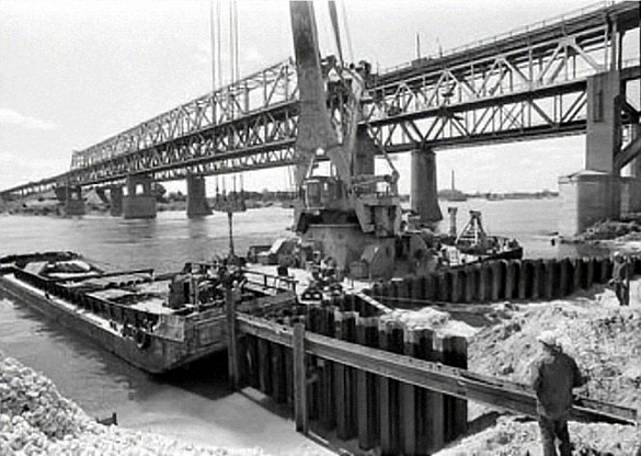 Исторические фото Борского мостаСтроительство и установка понтонного моста через Волгу.
