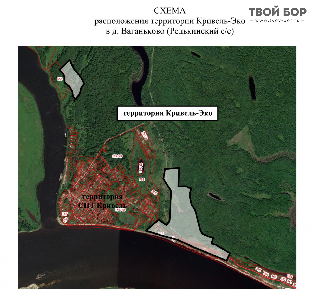 Первый - в д. Ваганьково (Редькинский с/с) – территория, расположенная в границах кадастрового квартала 52:20:1900021– Кривель-Эко. Источник: Твой Бор