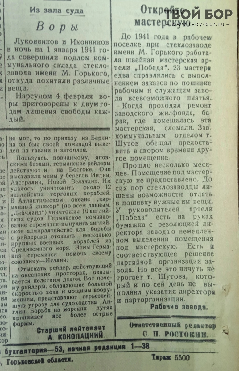 Как выглядели борские новости 84 года назад, да – в предвоенном 1941-мОх уж эти Иконников и Луконников.