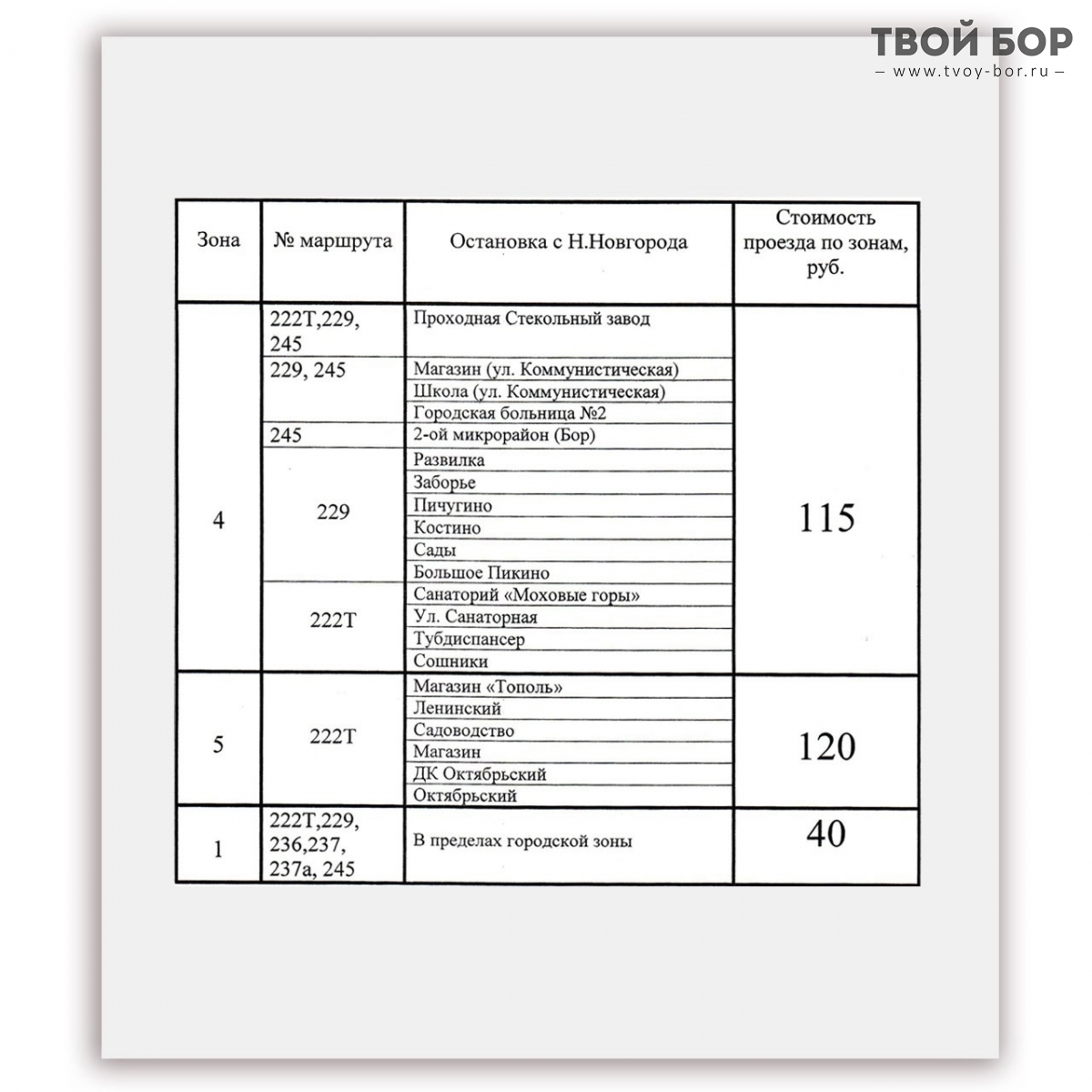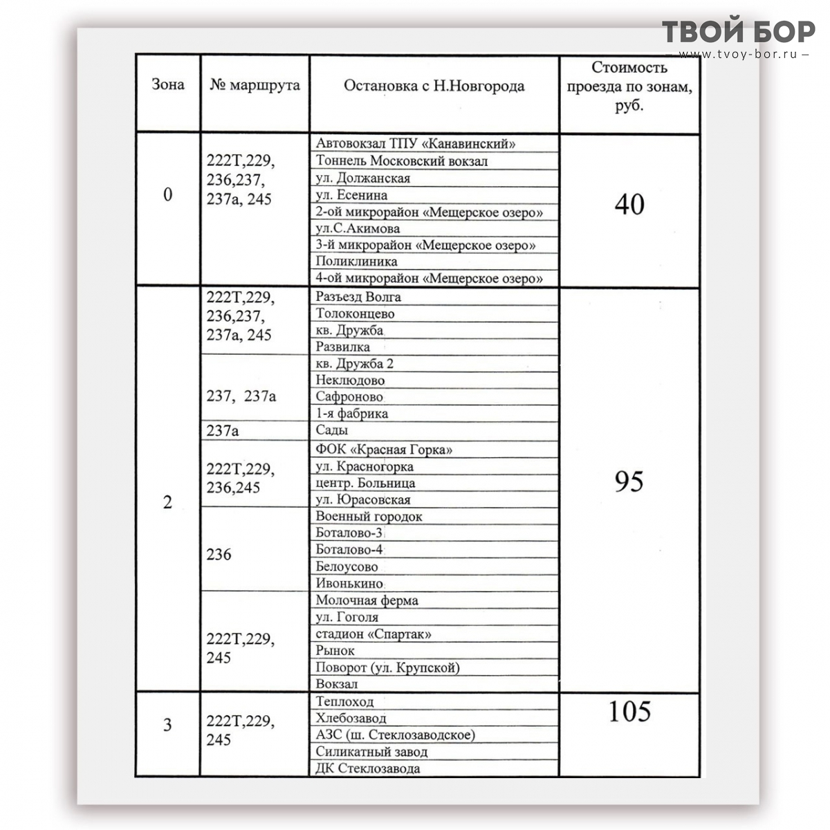 В соответствии с приказом АО «Борское ПАП» от 07.07.2025 № 129 с 01.08.2025г. устанавливаются следующие тарифы за проезд на межмуниципальных регулярных маршрутах№№ 222т, 229, 236, 237, 237А, 245: Комментарии