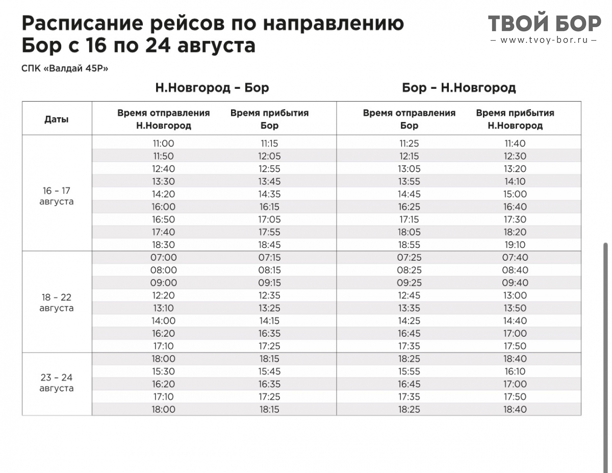 Обновленное расписание ВалдаяКомментарии
