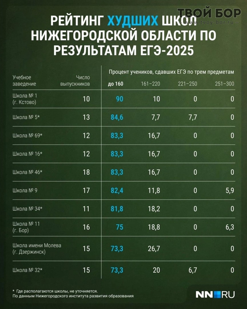 Борская школа попала в рейтинг худшихНН.РУ опубликовали рейтинг школ Нижегородской области по результатам ЕГЭ-2025