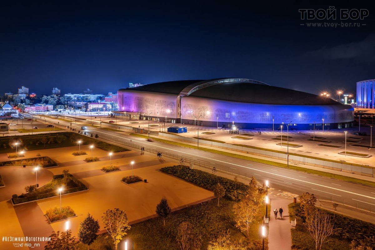 У новой ледовой арены включили подсветкуПосмотрите какая красота открывается с набережной Федоровского.