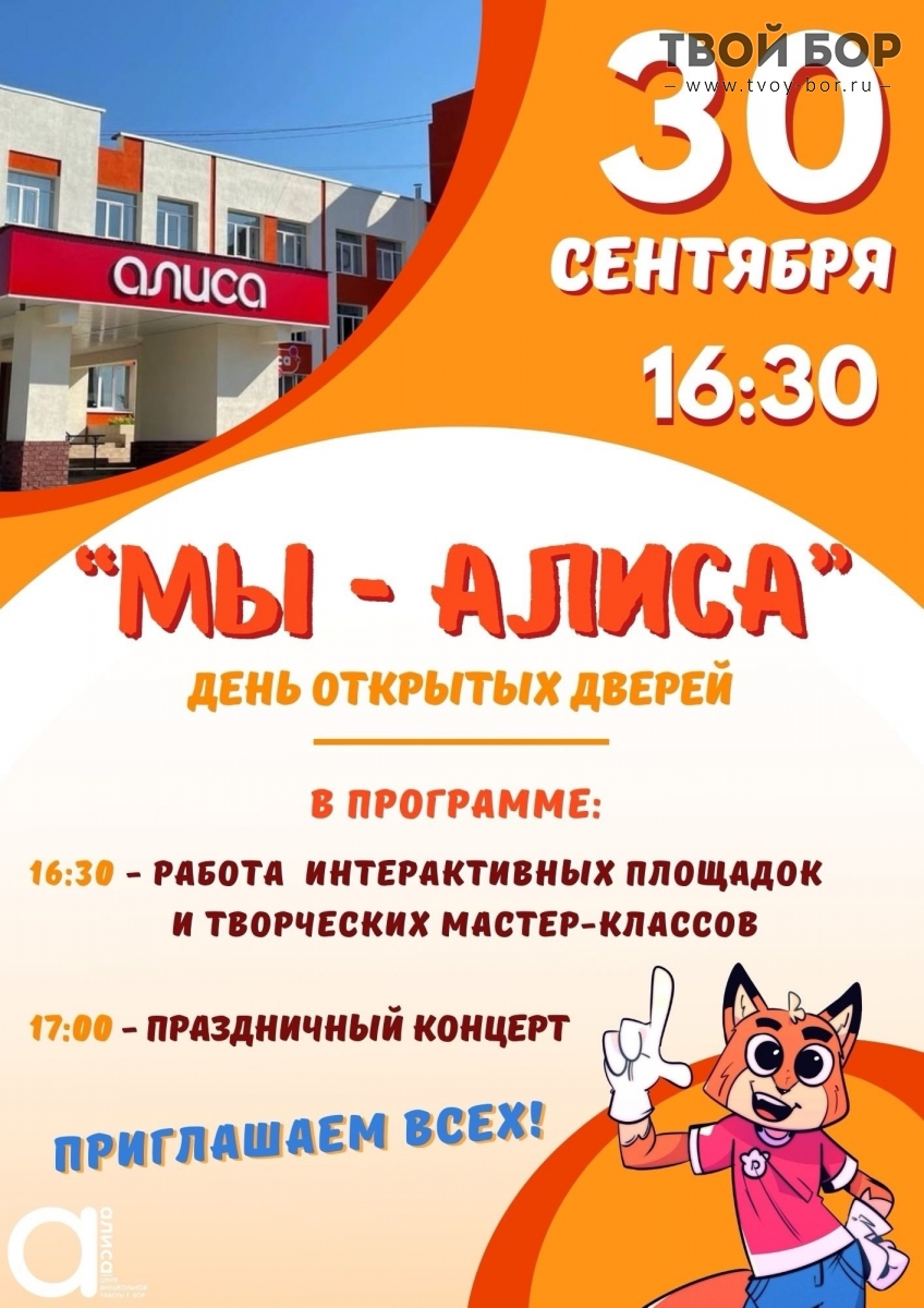ЦВР «Алиса» приглашает :️30 сентября в 16:30 в Центре внешкольной работы пройдет день открытых дверей «Мы - Алиса»