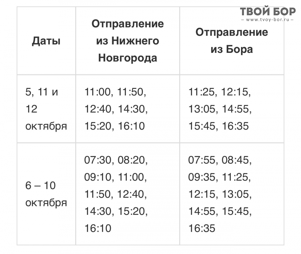 Новое расписание ВалдаяРасписание судна «Валдай 45Р» по маршруту Нижний Новгород — Бор действует с 5 по 12 октября 2025 года.