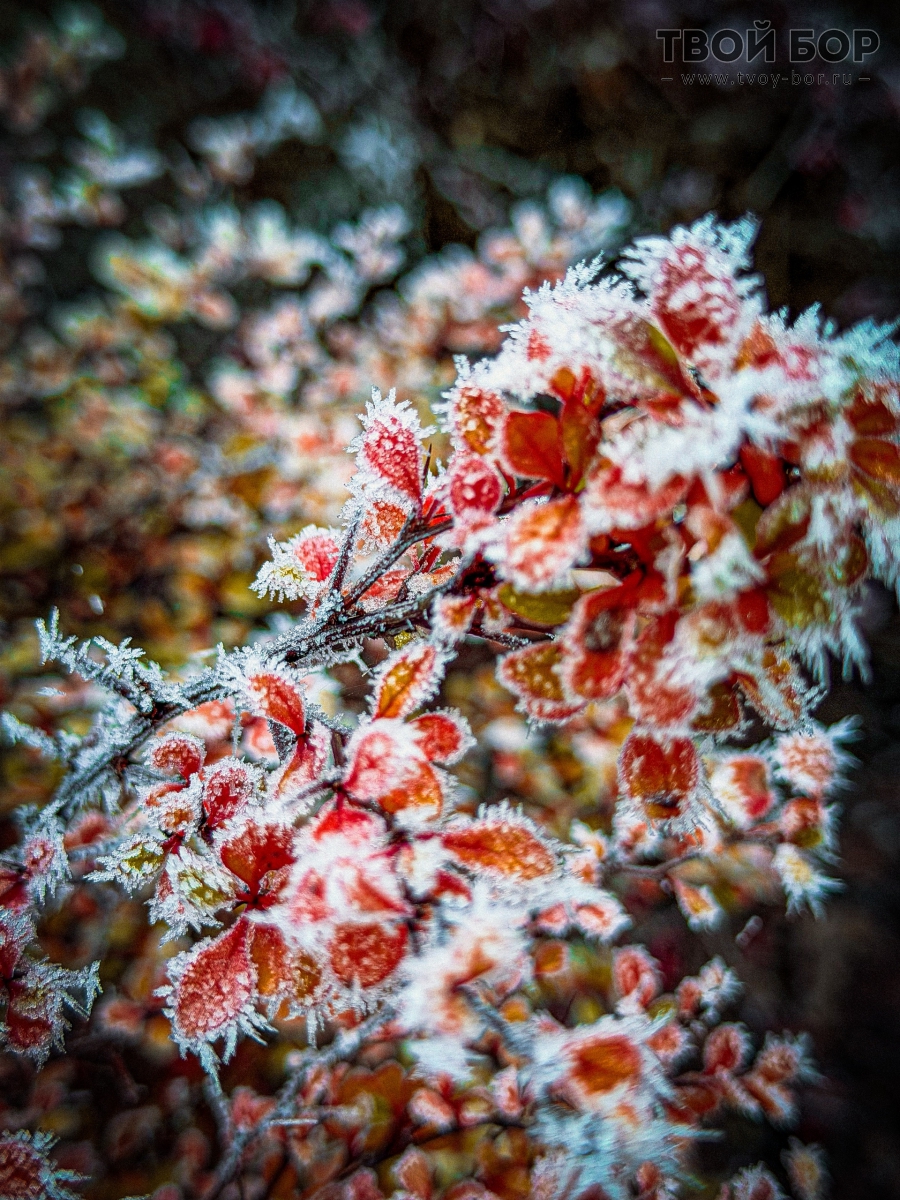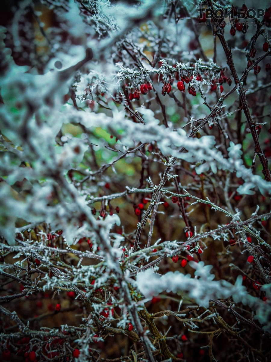 На фото — тот самый волшебный переход между осенью и зимой, когда всё ещё живое и тёплое вдруг укутано в морозное кружево. Комментарии