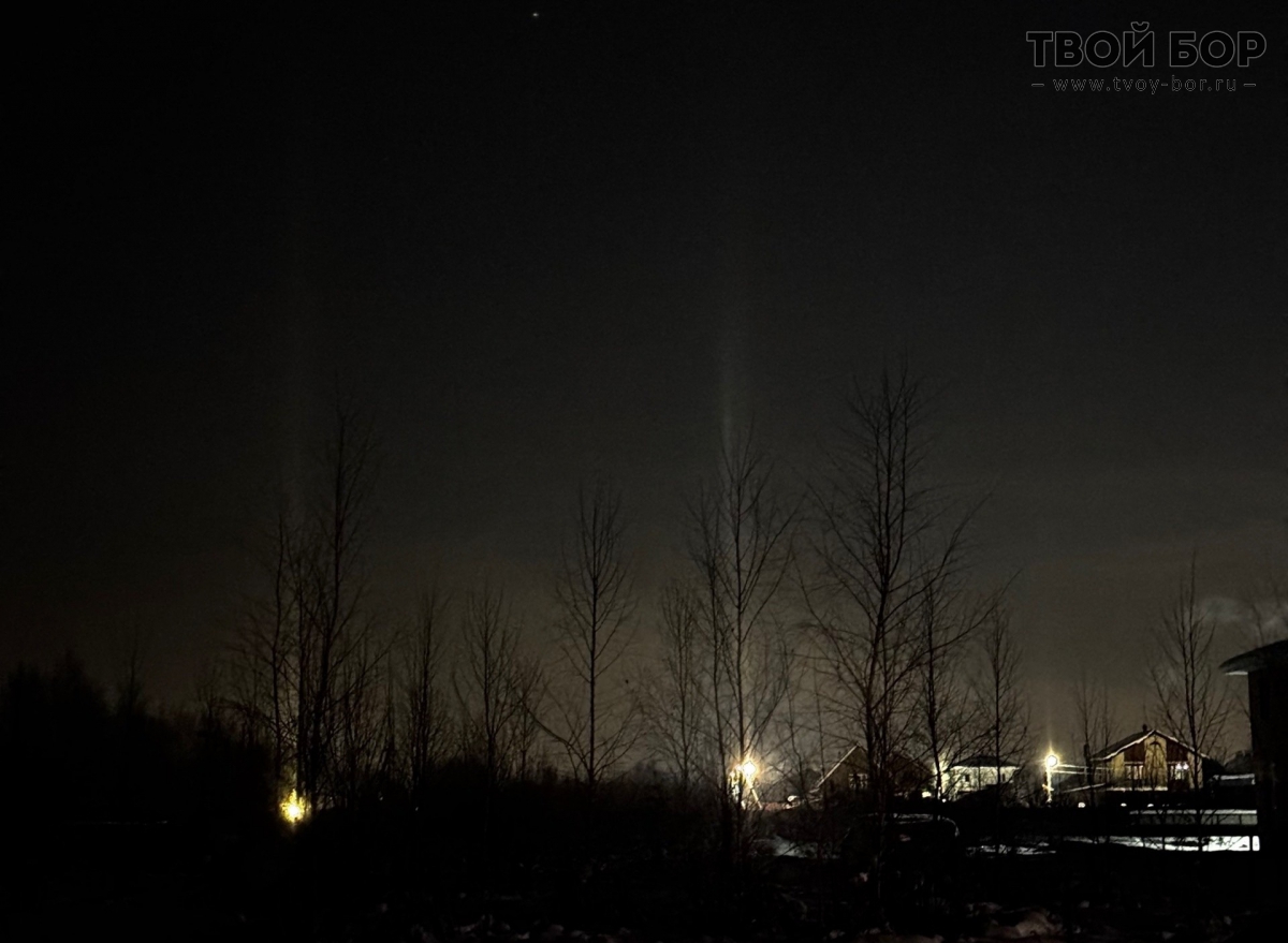 Вот такие световые столбы наблюдали на БоруЭто природное явление возникает при низких температурах, когда в атмосфере появляются кристаллики льда.