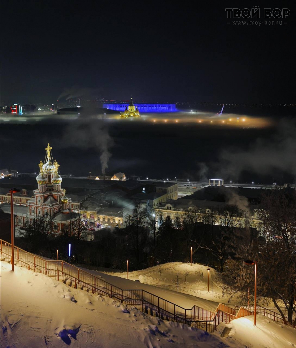 В эти морозные дни Волга и Ока в Нижнем Новгороде «парят»Туман над незамерзающими участками рек появляется из-за разницы температур воды и воздуха. И чем она сильнее, тем гуще туман.