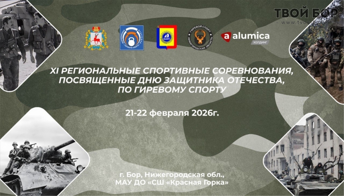 На Бор приедут сильные люди21-22 февраля 2026 года на базе МАУ ДО "СШ "Красная Горка", состоятся XI открытые региональные спортивные соревнования по гиревому спорту, посвященные Дню защитника Отечества.