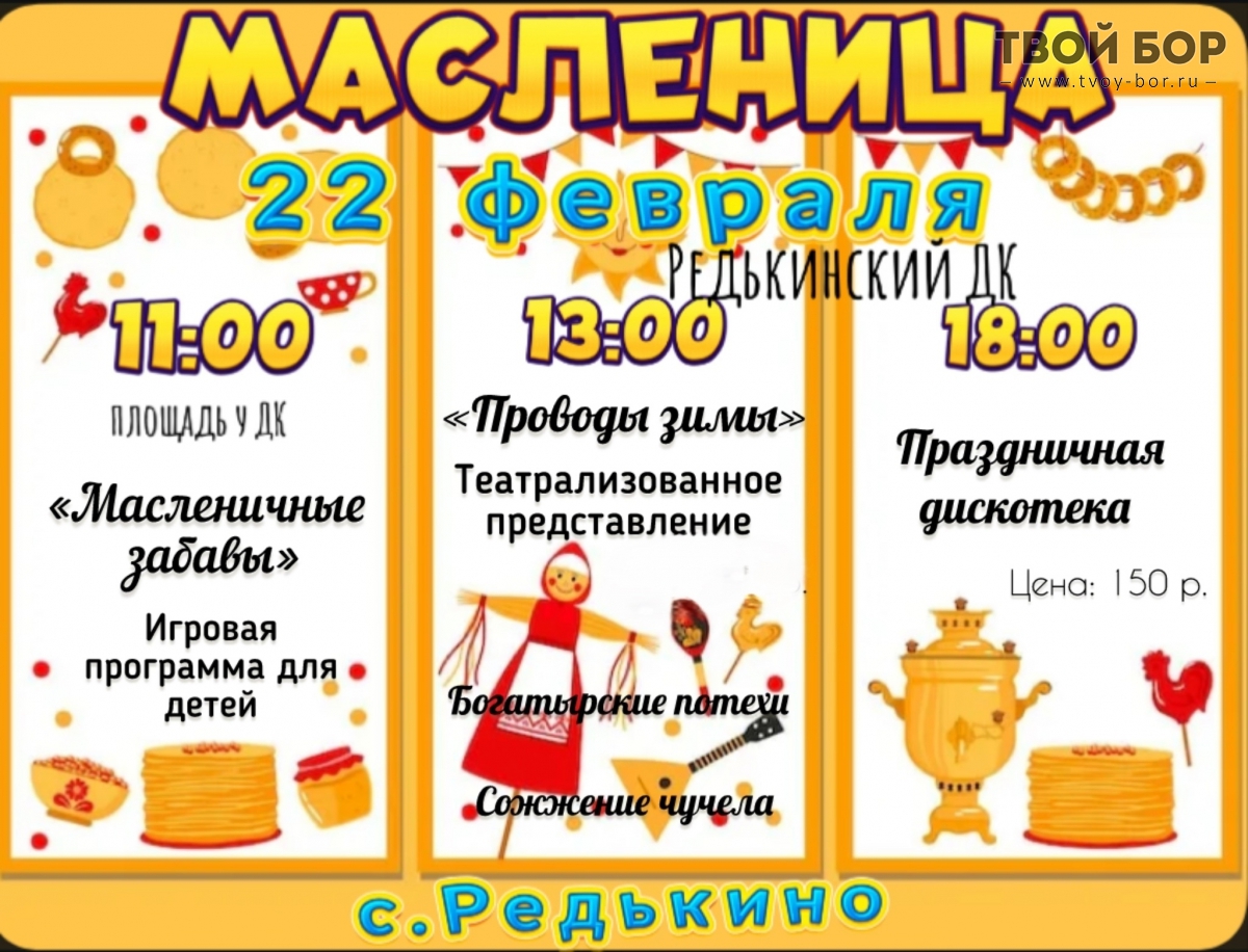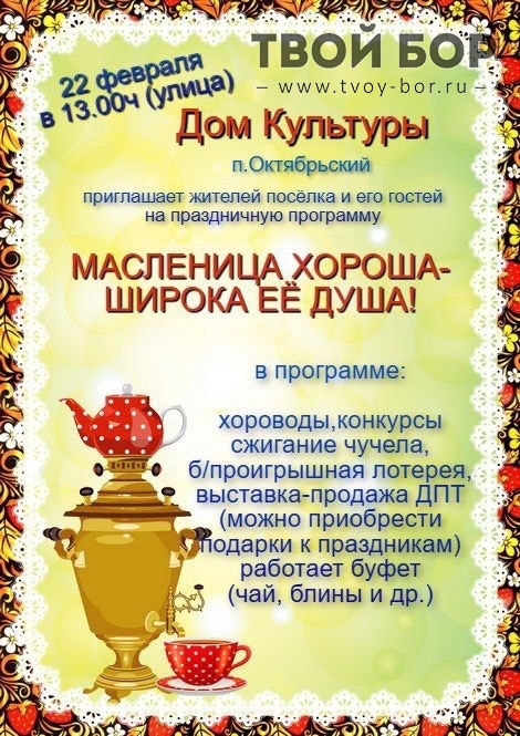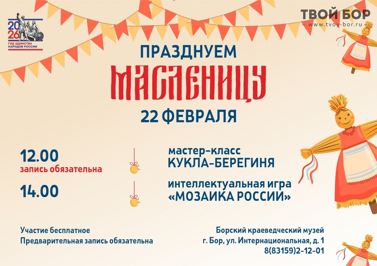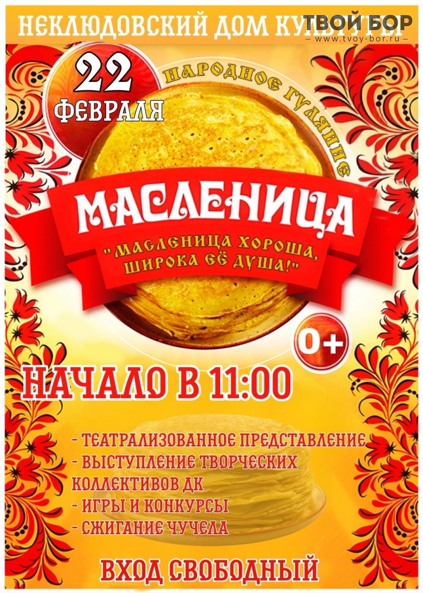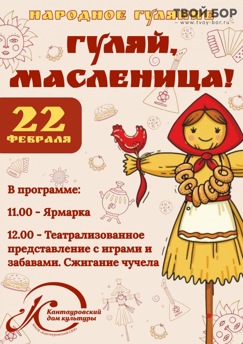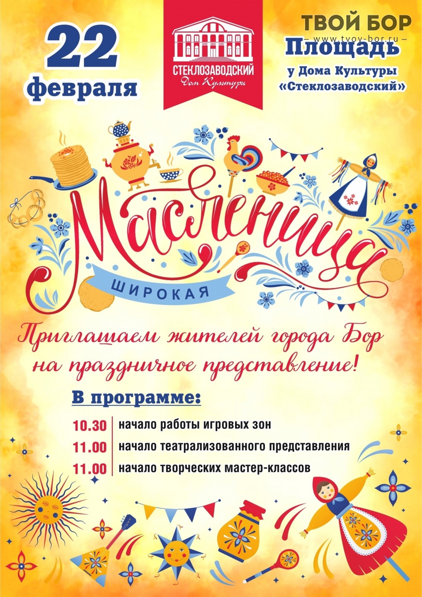 Масленица на Бору!В воскресенье, 22 февраля, всех жителей города ждут весёлые народные гуляния.