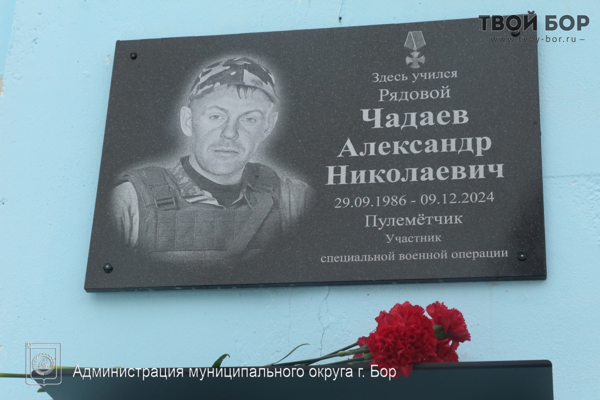 В Останкино и Октябрьском увековечили память борчан, погибших в ходе специальной военной операцииНа здании Останкинской школы установили мемориальную доску Александру Николаевичу Чадаеву — её выпускнику. После школы он окончил Борский индустриально‑экономический техникум, работал на предприятии «АВЕН‑МАФ». В сентябре 2024 года заключил контракт и служил пулемётчиком на Харьковском направлении. Погиб в декабре 2024 года. Комментарии