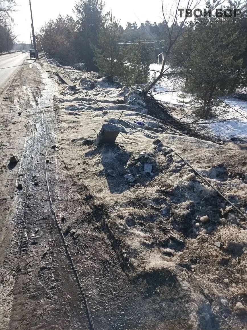 Опора, поврежденная в результате дорожно-транспортного происшествия, будет заменена позднее. Комментарии