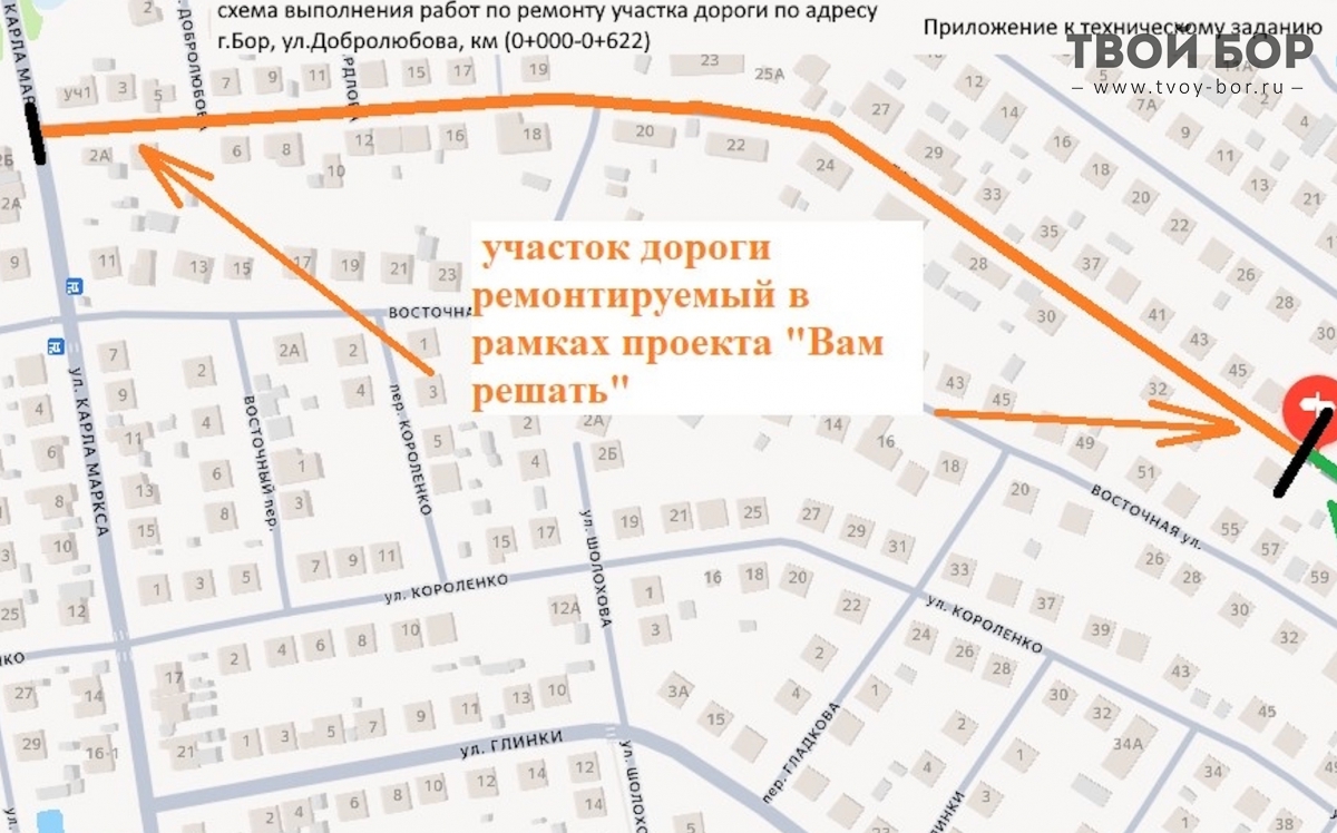 - Выполнение работ по ремонту участка дороги по адресу: г. Бор, ул.Добролюбова, км. (0+000 - 0+622) - 6 317 463,90 ₽ Схемы на скриншотах Комментарии