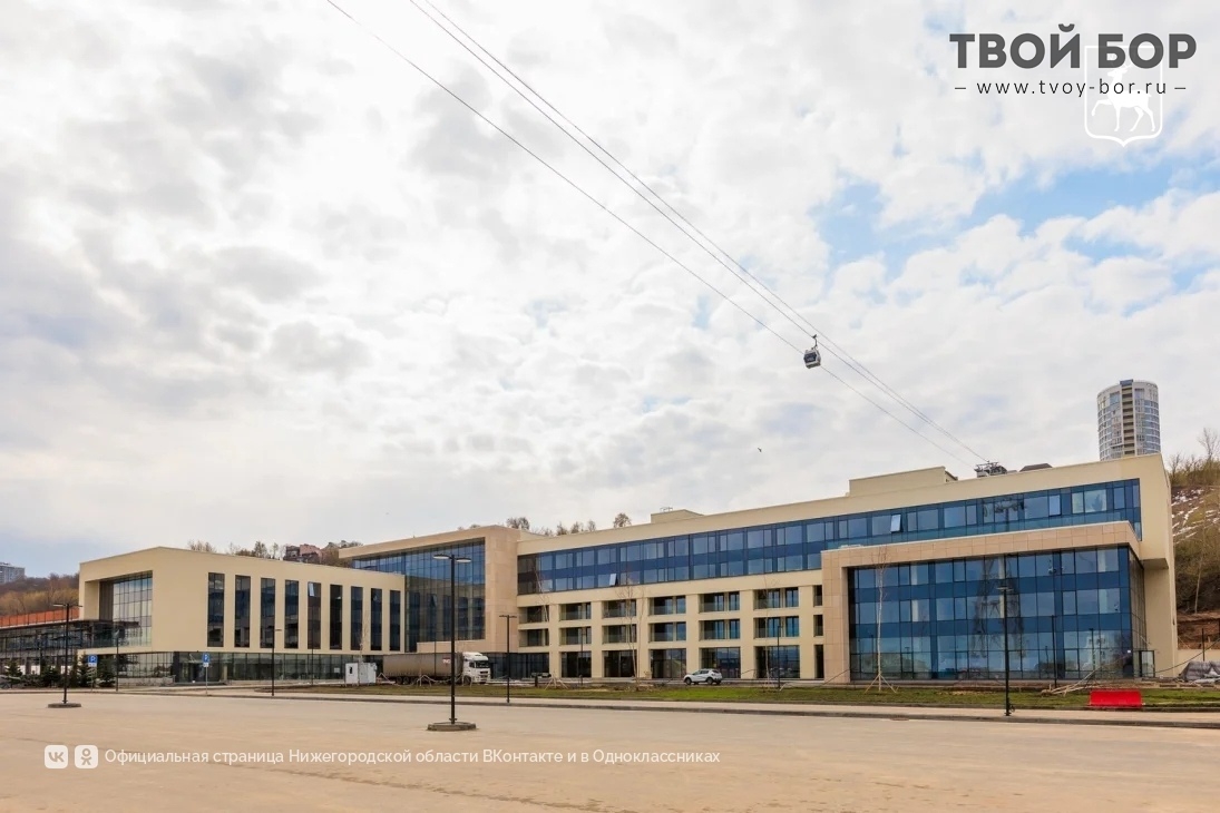 Что строят под канаткой со стороны Нижнего?Туристический комплекс «Экопарк на Гребном канале» - вот что строится под канатной дорогой, рядом с Печерским монастырем в Нижнем Новгороде. Отель «пять звезд» на 265 номеров, ресторанные и общественные пространства, а также масштабный термальный комплекс с бассейнами под открытым небом.