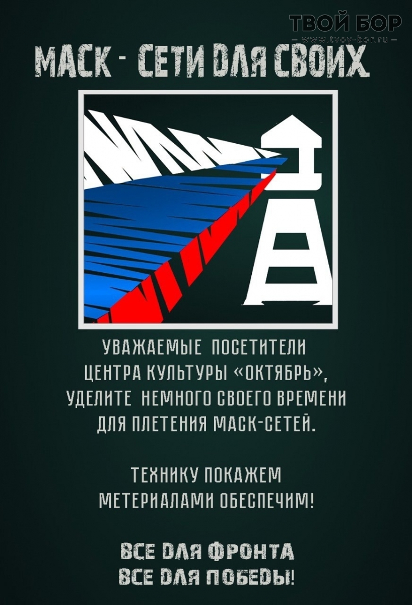 Патриот-зона в Центре культуры "Октябрь" ждет СВОИХ людей!Приходите к нам, даже на небольшой отрезок времени, для плетения маскировочных сетей.
